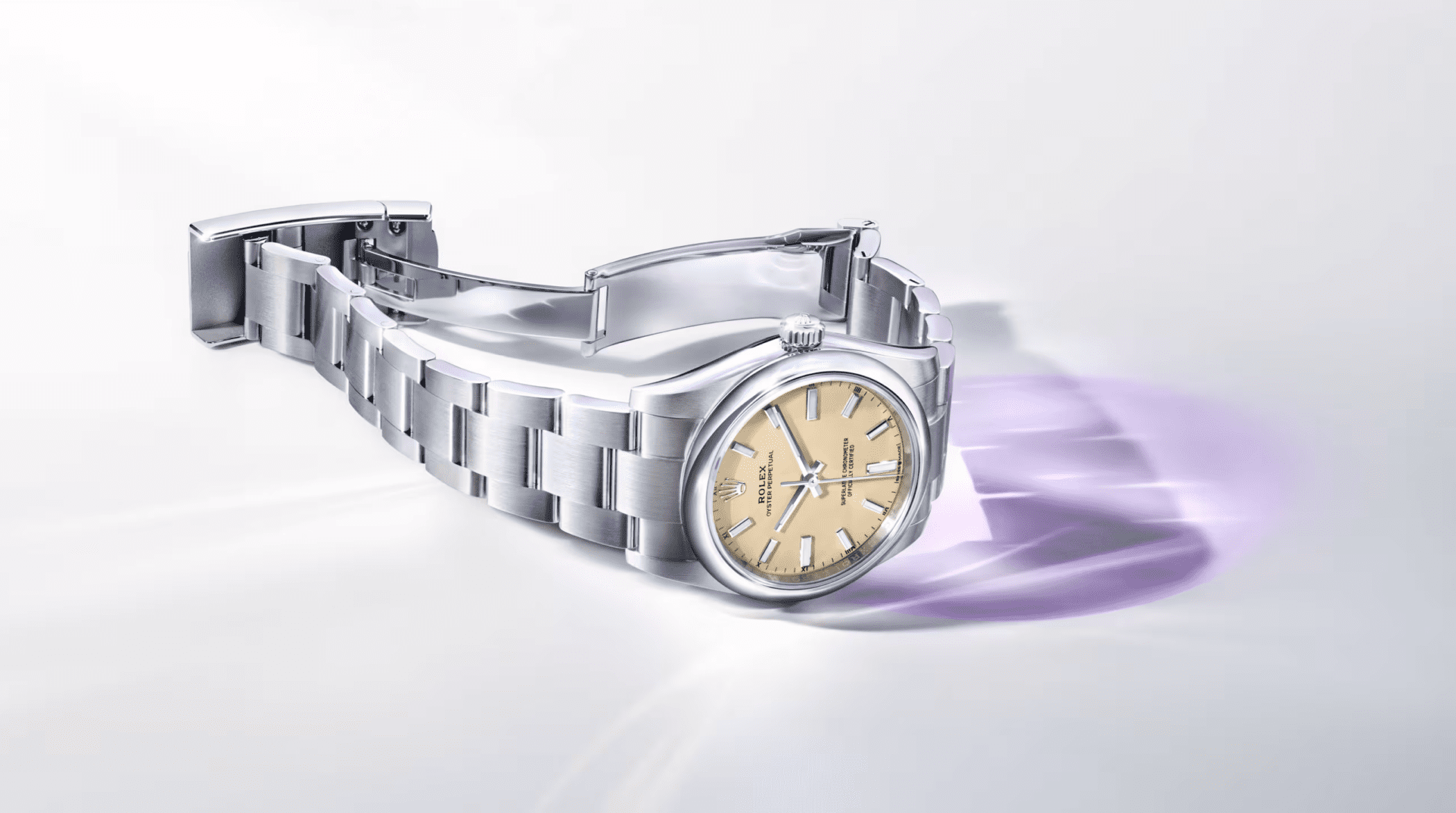 Every Oyster Perpetual proudly carries the green seal of the Superlative Chronometer certification. This isn’t just any certification—it means your watch has passed Rolex’s most demanding performance tests, surpassing even the official COSC standards for chronometers. That green seal also comes with peace of mind: a five-year international guarantee.